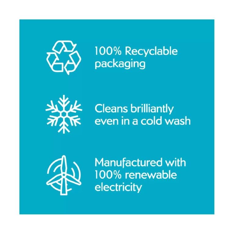 Unique multi-compartment design: The pods have aunique multi-compartment design which ensures thateach ingredient is released into the wash at the righttime. This means you get spotlessly clean clothes everytime.